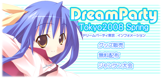 リリアンは「DreamParty 東京 2008春」に参加します。 話題の最新作『ティンクル☆くるせいだーす』グッズ販売や小冊子の無料配布を予定しております。 また、ドリパ恒例(!?)の豪華イベント“ジャンケン大会”では 素敵なプレゼントをご用意いたしました。 5月3日は東京ビッグサイトで僕と握手!
