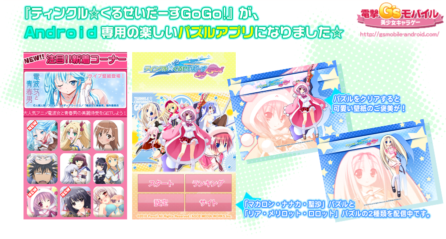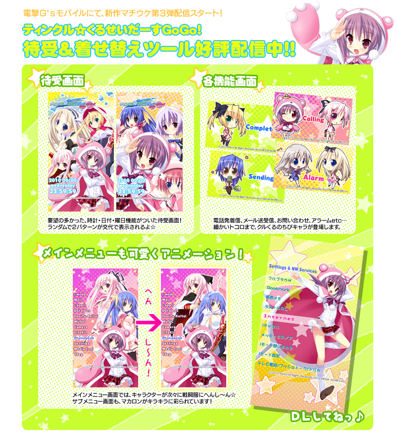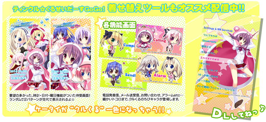 「電撃モバイル」と「電撃G'sモバイル」にて、『ティンクル☆くるせいだーすGoGo!』の待受壁紙や、携帯着せ替えツール好評配信中! |