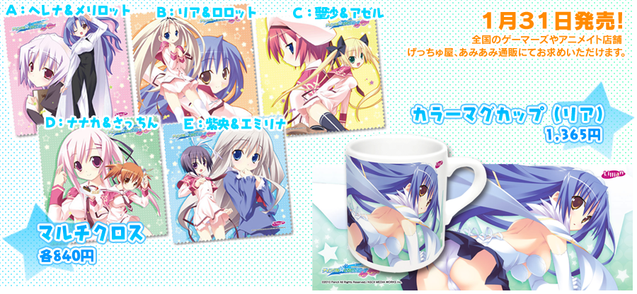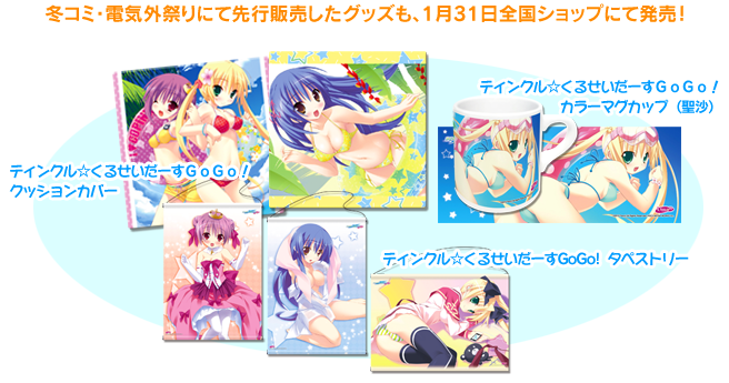 2011.1.27 TOYPLAより ティンクル☆くるせいだーすGoGo!の、マルチクロス&九浄リアマグカップが発売されます! |