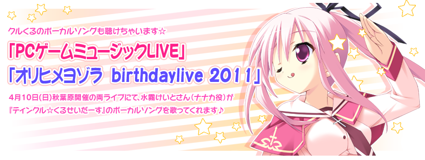2011.4.4 水霧けいとさんが「PCゲームミュージックライブ」にて、クルくるのボーカルソングを歌います! |