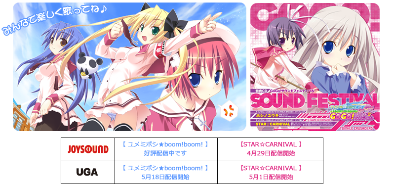 2011.4.28 「ユメミボシ★boom!boom!」「STAR CARNIVAL」カラオケ配信決定♪ |