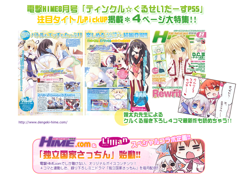 電撃HIME 8月号にて『ティンクル☆くるせいだーすPSS』が、注目タイトルPickUPコーナーで紹介されました! |