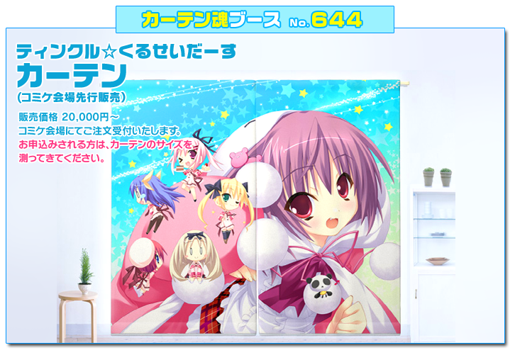 コミケ会場で展示された、話題の「ティンクル☆くるせいだーす カーテン」通販お取り扱いが始まりました。 |