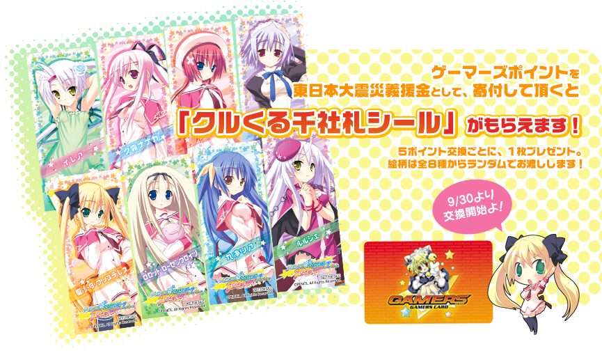 2011.9.15 ゲーマーズポイントを寄付していただくと、クルくる千社札シールをプレゼント! |