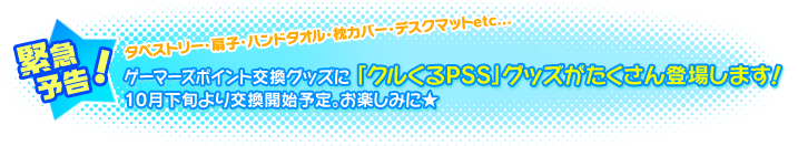 10/28より交換開始! ゲーマーズポイントでクルくるPSSグッズが貰えちゃいます☆ |