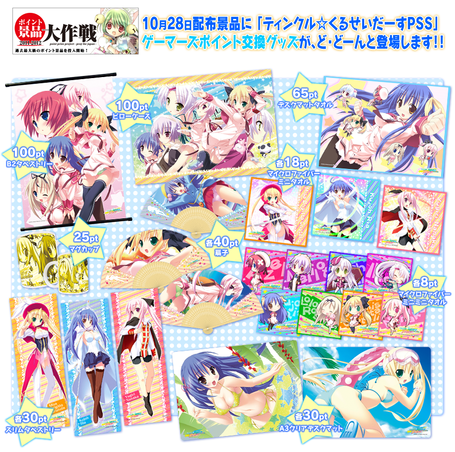 この秋、ゲーマーズポイント交換グッズに、9種類もの『ティンクル☆くるせいだーすPSS』限定アイテムが登場します! |
