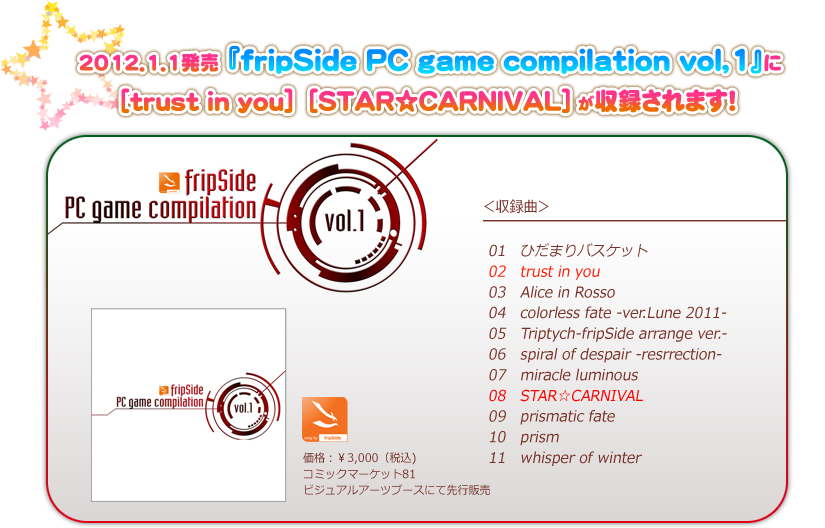 2011.12.9 12月14日発売! fripSideニューシングルのc/wに、クルくるPSS主題歌「Last fortune」が収録されています。 |
