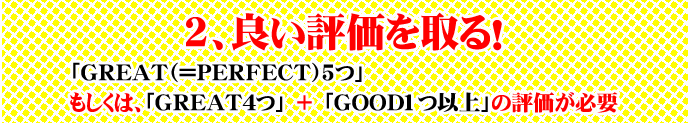 ここの項目で「GREAT」をたくさん出すでやんちゅね。