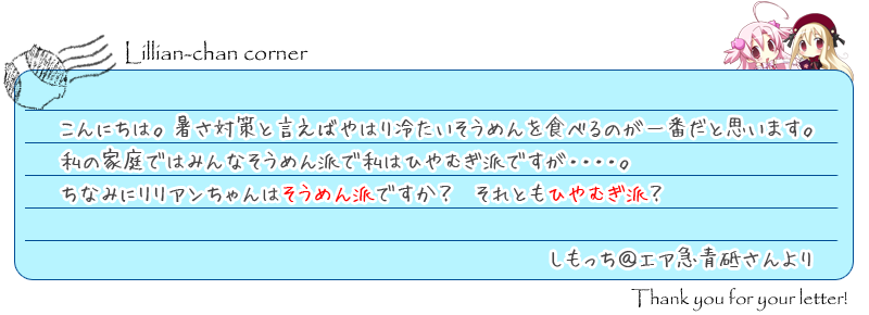 「おそうめん」と「ひやむぎ」の違いがわからない方、リリアンちゃんです!