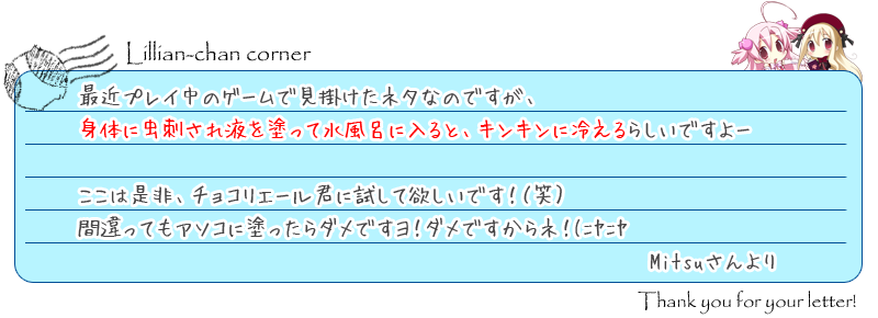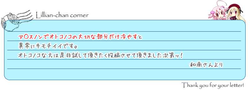 リリアンちゃん、オトコノコではないので、意味がわかりませーんっ>△<