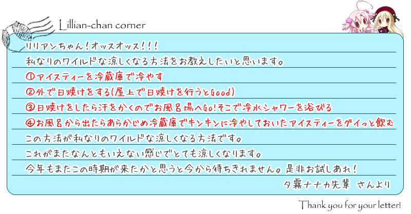 前回のコーナーで、夏の暑さ対策を募集したところ……、たくさんお便りが届きました!