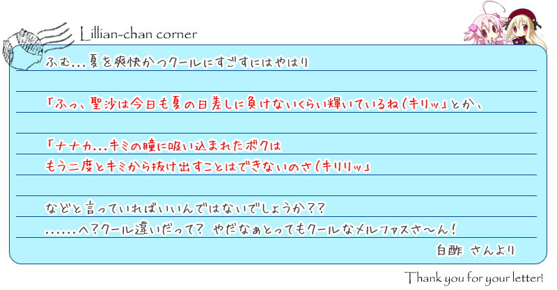 星空に願いをかけつつ、リリアンちゃんコーナー!第102回がはじまりますよ〜☆ミ