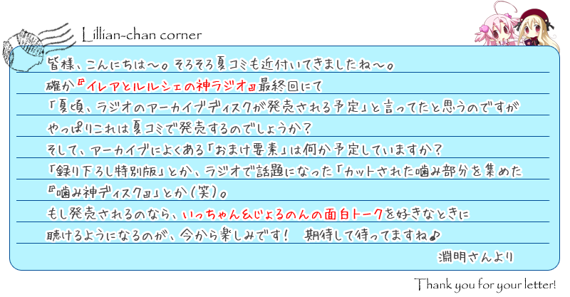 ラジオCDの発売は必ずしますので、もうちょっとだけ情報公開をお待ちください!(ペコリ