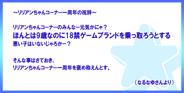 みなさ〜〜ん! リリアンちゃんの怪しいコーナーのお時間ですよ〜〜!